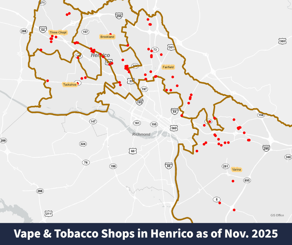 Residents have voiced concerns about the rapid growth of smoke shops that have opened in the area, as well as the increase of recreational substances sold in convenience stores and gas stations. Henrico officials share these concerns and launched a multidepartment task force mid-2025 to assess the reach of these products.